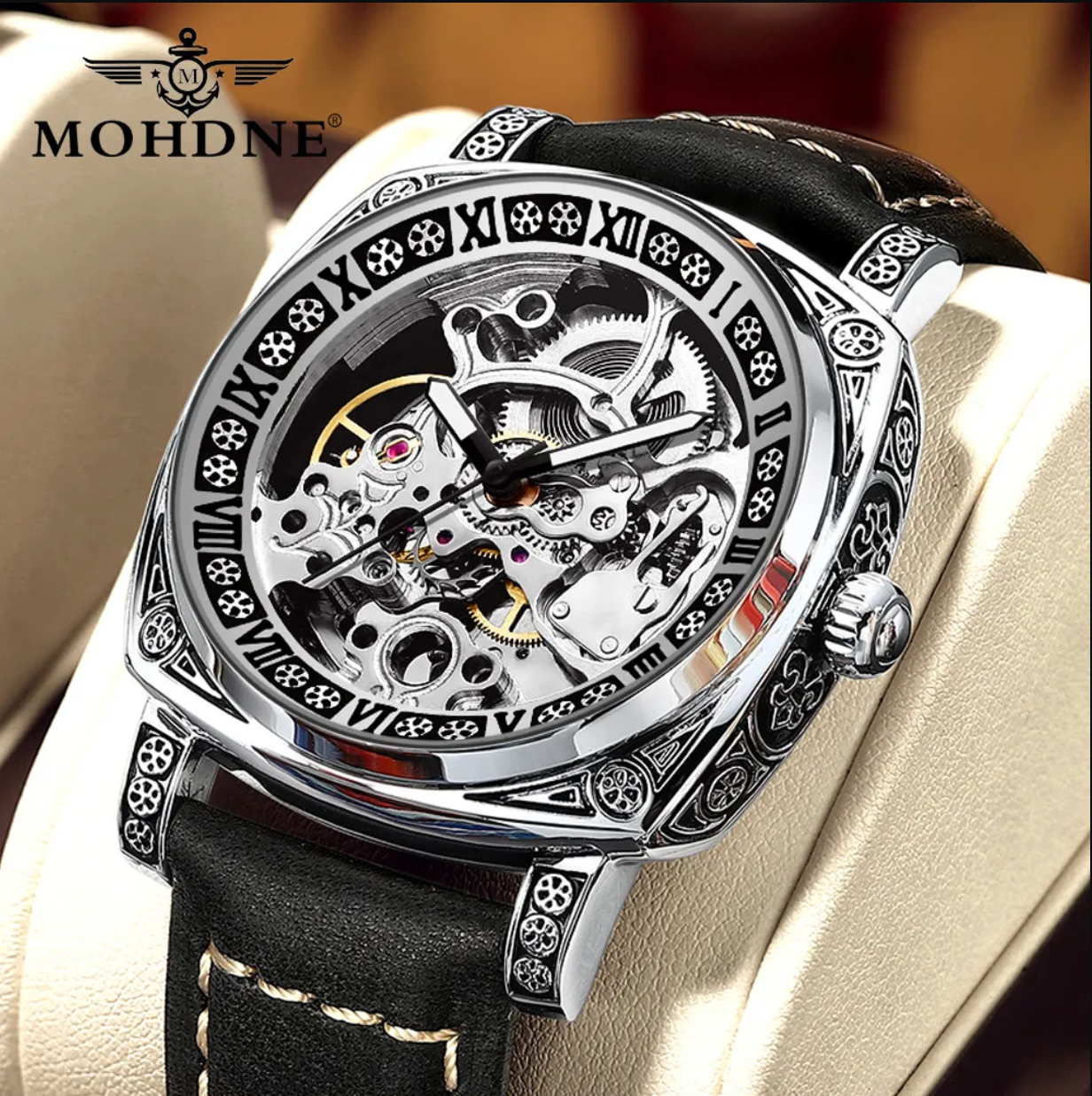 - Montre-bracelet pour hommes Royal Classic, cadran romain, montre-bracelet squelette automatique.